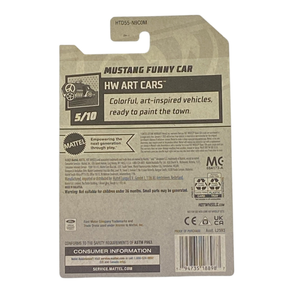 Rev up your collection with the Hot Wheels Mustang Funny Car from the HW Art Series 5/10! This 1:64 scale die-cast model showcases the iconic Ford Mustang in a vibrant, drag-racing-inspired design, blending bold artistry with high-speed style. Perfect for collectors and kids, its sleek lines, vivid graphics, and durable construction make it a standout for play or display. Celebrate the thrill of Hot Wheels and the legacy of the Mustang Funny Car with this must-have addition to your lineup. Grab yours now and ignite your passion for die-cast excellence!